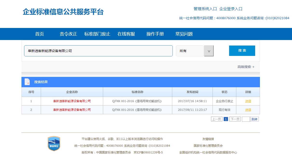 阜新逍客新能源設備有限公司雪場用帶式輸送機國家企業(yè)標準信息公共服務平臺可查